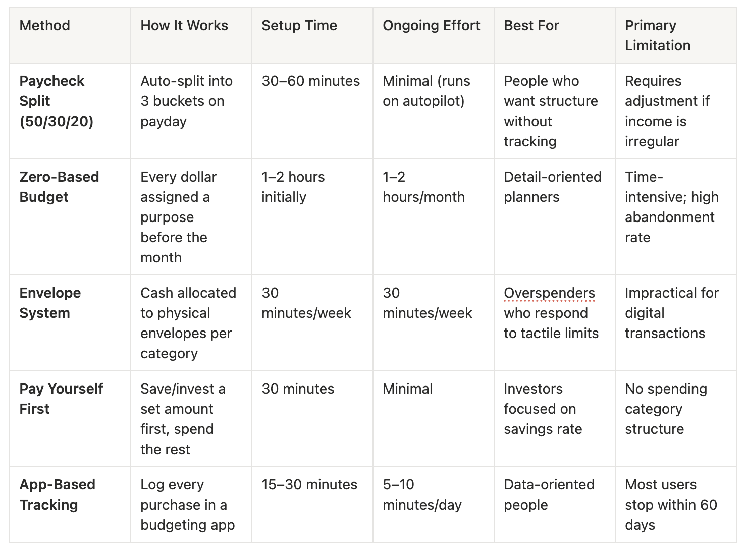 Comparison Table: Budgeting Methods